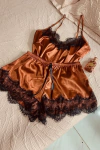 Camisola feminina em liganete leve com estampa de laços em alta definição. Possui busto em renda poliamida, faixa rendada abaixo do busto para melhor sustentação e alças reguláveis que garantem ajuste preciso. Modelagem soltinha, caimento confortável e acabamento em renda na barra, trazendo delicadeza e elegância ao visual.