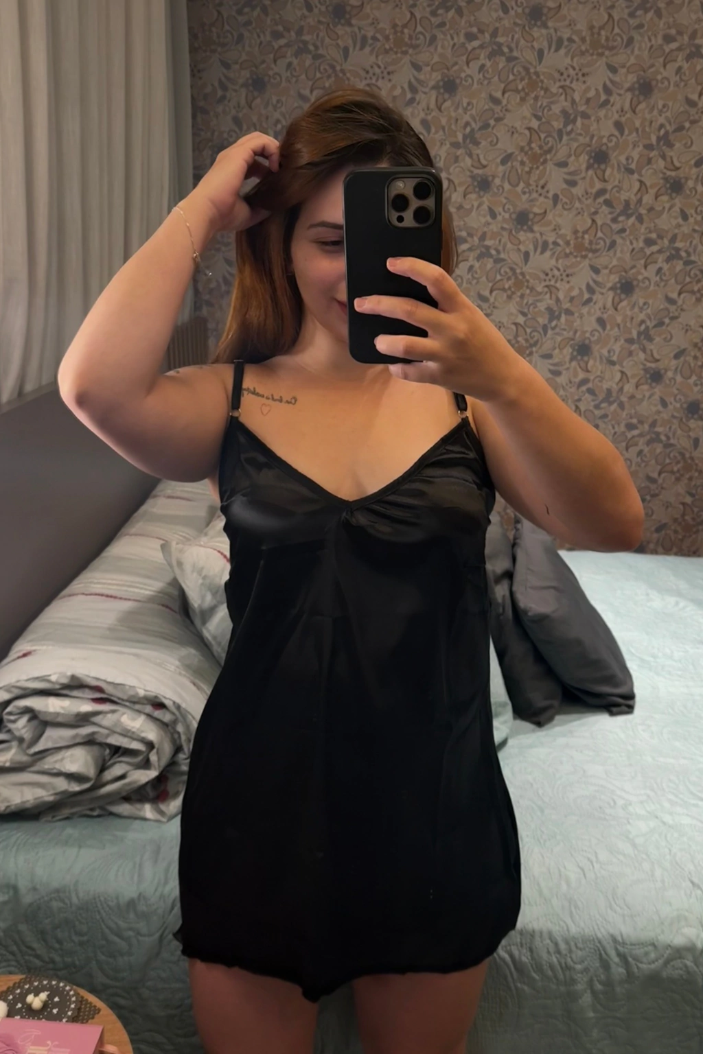 A Camisola Segredo da Meia-Noite traz o charme do cetim preto em um design minimalista e atemporal. Com alças reguláveis que garantem caimento perfeito, é uma peça leve, confortável e versátil. Ideal para noites em que o básico se transforma em elegante, oferecendo frescor e delicadeza em cada detalhe.