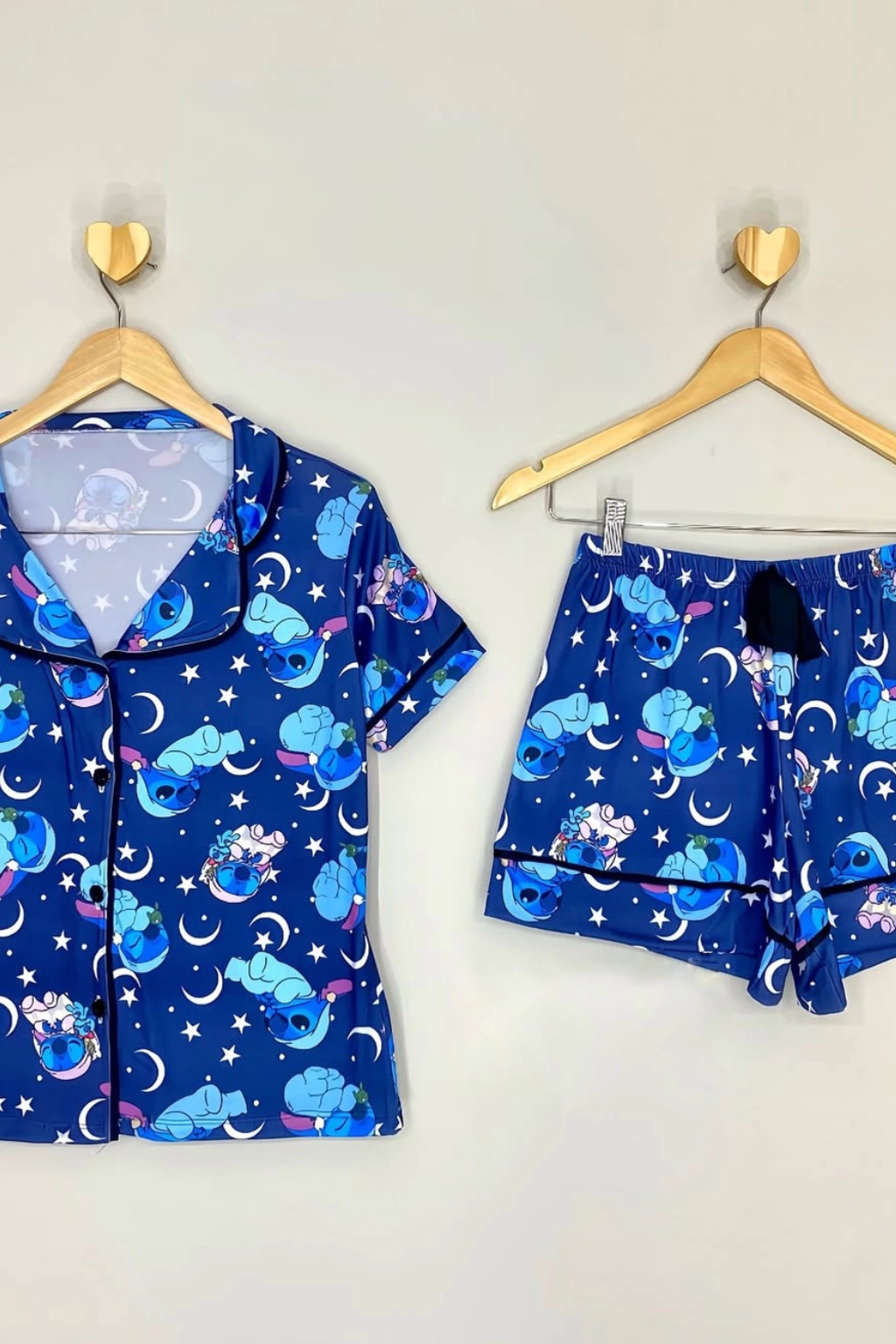 Pijama Lilo & Stitch confeccionado em suede premium, com toque super macio e confortável. O modelo conta com botões frontais funcionais, shorts com elastano que se ajusta perfeitamente ao corpo e um laço delicado que dá o toque final de charme. Ideal para quem ama conforto sem abrir mão de estilo